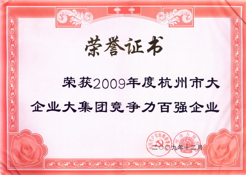 佳力被評(píng)為2009年度杭州市大企業(yè)大集團(tuán)競(jìng)爭(zhēng)力百?gòu)?qiáng)企業(yè)