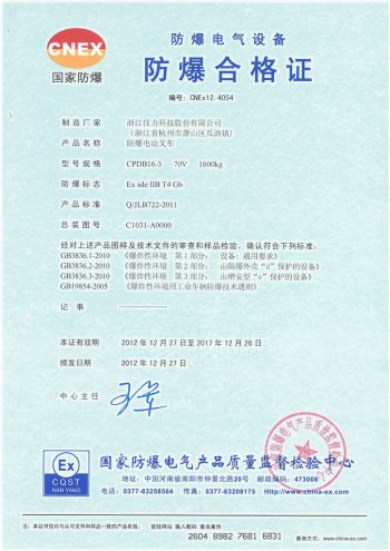 1-1.6T 三支點電動防爆叉車>>詳細信息